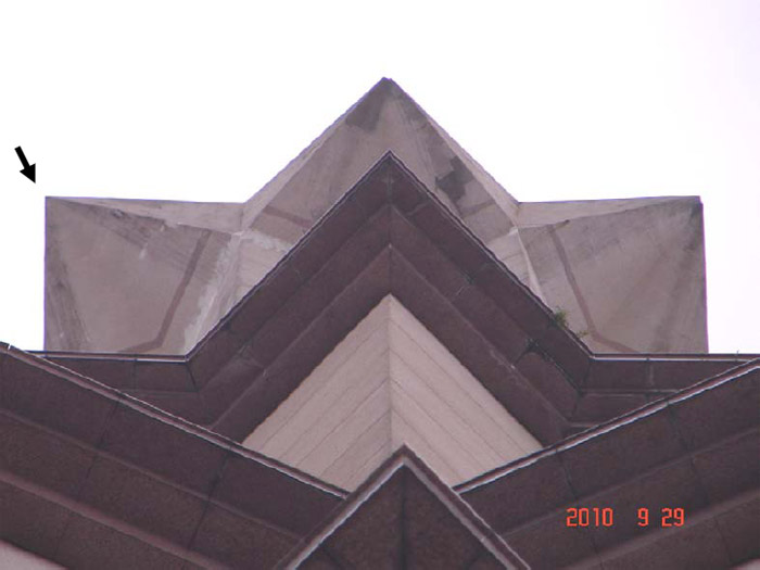 In September 2010, lightning again struck and damaged one of the protrusions on the