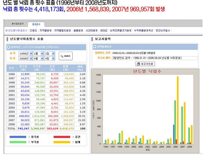 ֱ ³ȭ ̺ Ƚ ϰ ڿ뷮 ũ Ŀ ̰ ִµ, û 2007 ڿ ǥ ڷῡ ϸ ѹα Ƚ 1,555,230ȸ ̸ ϰ ִ.2009 û 6 16ϱ 8 ҿ õա ģ 44̾. 40% ̻ þ ġ. Ư 6 2~3Ͽ ־ (-1) õ ö ȭõ 籸 ڻ ״. *ڷ ǥ(1996~2008) Ƚ ǥ(1996~2008)